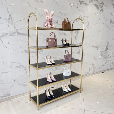 Présentoir de chaussures et de sacs pour femmes, présentoir en acier inoxydable doré, étagère à chaussures en métal, Design pour magasin